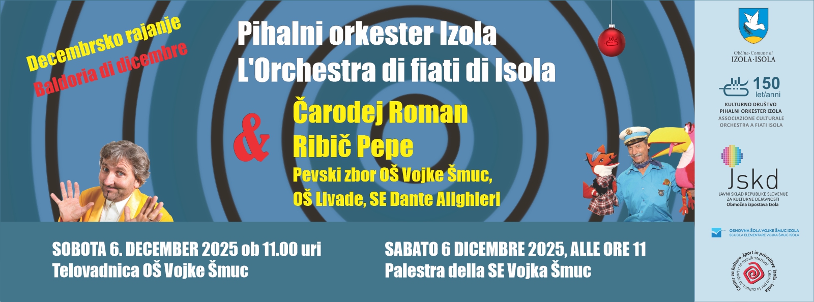 Ob prazničnih ritmih bomo plesali ter prepevali največje uspešnice priljubljenega Ribiča Pepeta in se naužili magičnih trenutkov čarodeja Romana.